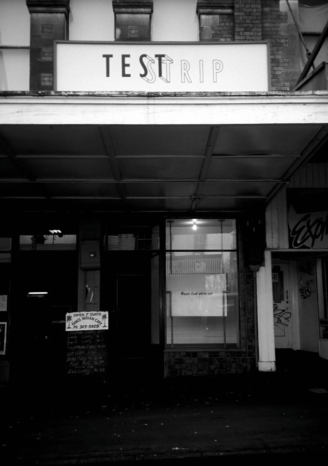“In 1992 eight artists (a mix of recent graduates and more experienced artists) frustrated with the lack of exhibiting opportunities from public art institutions and dealer galleries took on the lease of a modest floor at 10 Vulcan Lane in the heart of Auckland's CBD and opened Teststrip gallery with a group show of their work. The collective followed this with a series of solo shows and short-run publications. Encouraged by the response, they resolved to extend the program by inviting other artists to exhibit in exchange for a nominal fee to help pay the rent. At the end of 1994, due to the growing gentrification of the CBD, Teststrip was forced to move to a new building at 454 Karangahape Road, Newton, which gave the opportunity for the collective to reconsider operations. With funding from Creative New Zealand the group upgraded the two-gallery space, formalised their publication series, the Teststrip micrographs, employed an administrator and worked with a designer to develop a graphic identity. Teststrip broadened the kinds of projects they undertook, in particular working with Australian artists and curators and holding a series of shows by Los Angeles artists. In their final year the collective strengthened their connection to the wider arts community with the inclusion of music, theatre events and exhibitions of work in jewellery and ceramics. These events, projects, installations, screenings and performances were documented and this publication is an extension and consolidation of the aims and values of Teststrip. The Teststrip gallery model has influenced subsequent artist-run galleries around New Zealand, and several members are still part of these collectives.” (‘Introduction’, Teststrip, Auckland: Clouds, p146.)